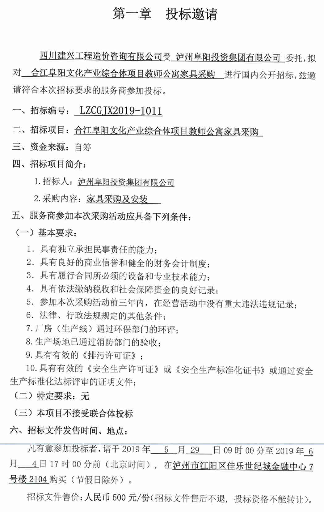 合江阜陽文化產(chǎn)業(yè)綜合體項(xiàng)目教師公寓家具采購