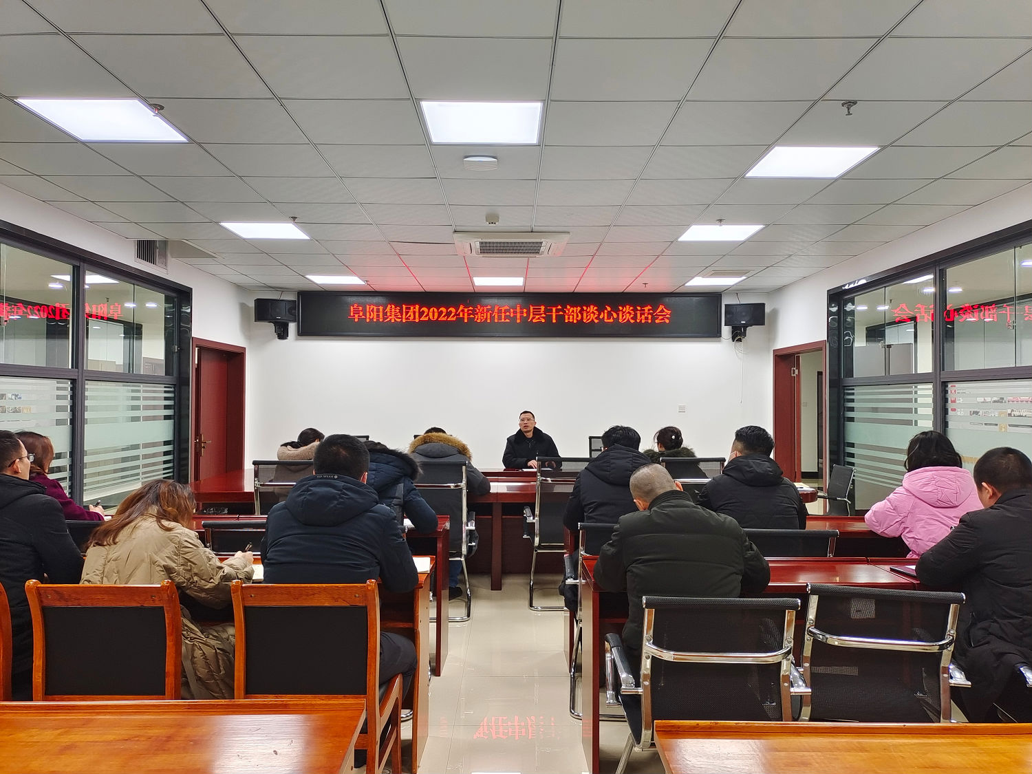 2022 年 2 月 9 日, 阜陽(yáng)集團(tuán)公司黨委副書(shū)記、 紀(jì)委書(shū)記 聶仕華對(duì)新任中層干部開(kāi)展任前集中廉潔談話。