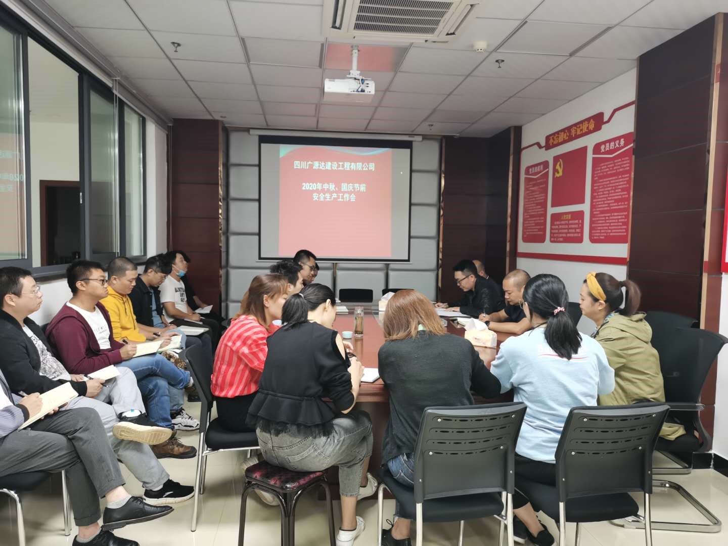 2020年9月25日,廣源達公司董事長譙棣升主持召開中秋國慶節(jié)前安全生產(chǎn)工作會暨《關(guān)于迅速集中整改國務(wù)院安委會考核巡查四川省2019年度安全生產(chǎn)和消防工作發(fā)現(xiàn)問題工作方案》的整改會,公司全體人員及各在建項目項目經(jīng)理和安全負責(zé)人參會。