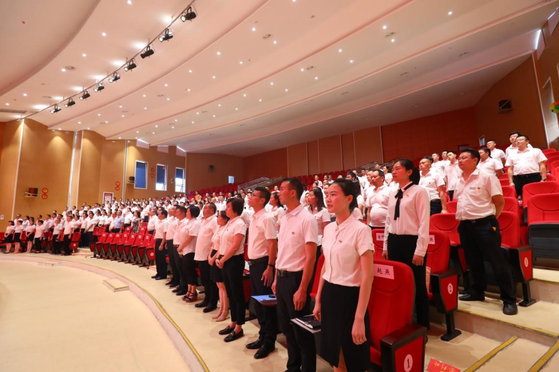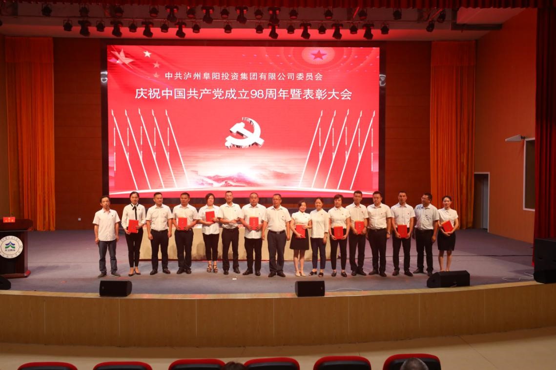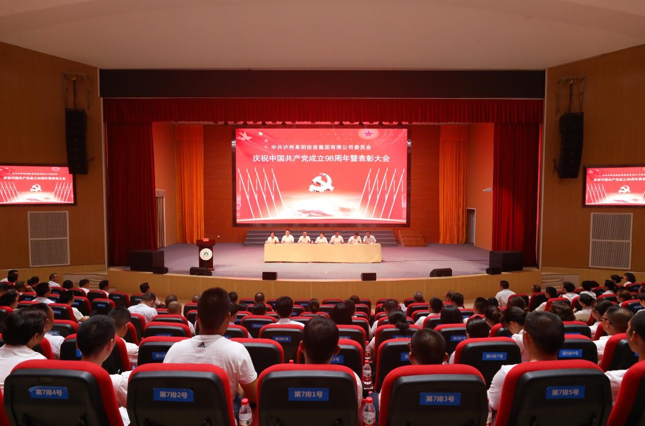 2019年7月1日下午,瀘州阜陽投資集團有限公司黨委在合江天立學校驕子演藝廳召開“慶祝中國共產(chǎn)黨成立98周年表彰大會”,集團黨委書記、董事長游啟君主持會議。集團全體黨員、預備黨員、發(fā)展對象、積極分子及下屬公司全體員工300余人參加會議。