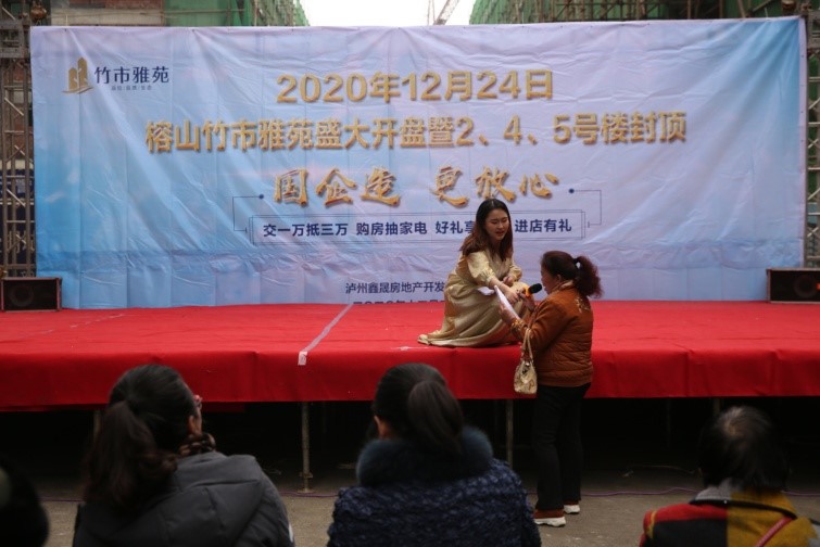 2020年12月24日上午,鑫晟地產(chǎn)公司在竹市雅苑售房部現(xiàn)場(chǎng)隆重舉行項(xiàng)目開盤暨2、4、5號(hào)樓封頂活動(dòng)。豐富多彩的節(jié)目表演、精彩有趣的有獎(jiǎng)問(wèn)答吸引了周邊群眾觀看、參與。 此次活動(dòng)達(dá)到了很好的宣傳造勢(shì)效果,使“國(guó)企造,更放心”深入人心。