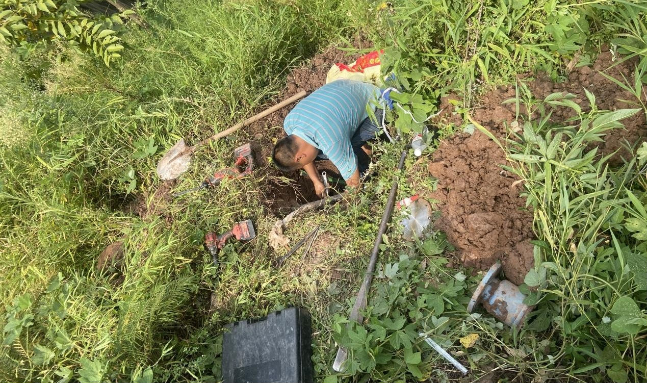 8 月 19 日上午 7 點 40 分鳳鳴片區(qū)負責(zé)人陳裕寧帶隊查看陽 棚垇私拉亂接現(xiàn)場,預(yù)防后段用水戶無法正常供水