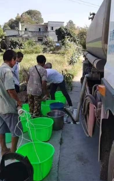 8 月 21 日江北片負責(zé)人任椿汲組織一線員工對白米鎮(zhèn)向陽村進行送水服務(wù)