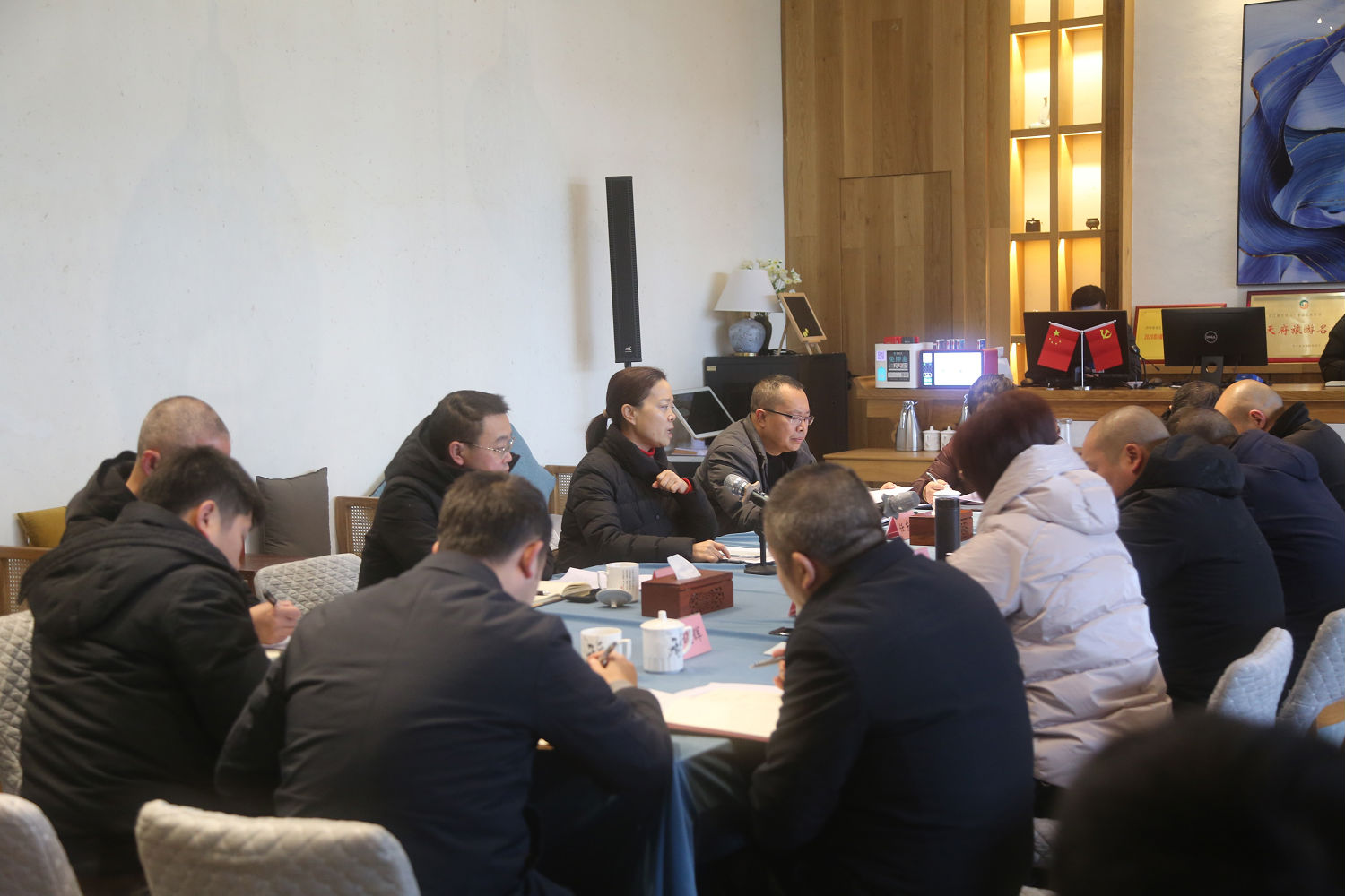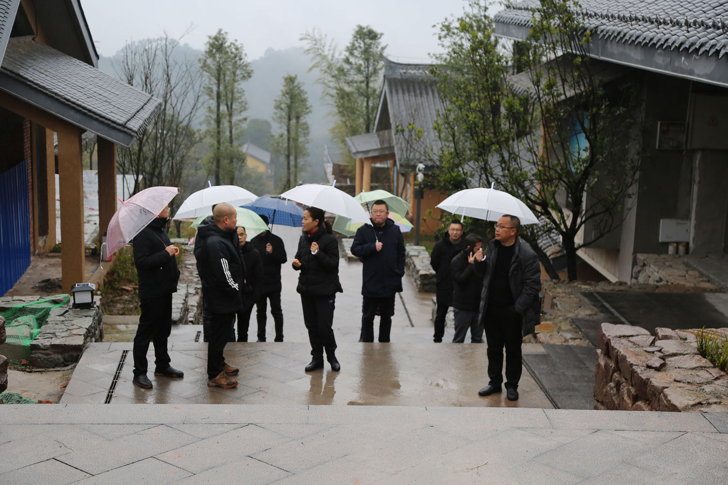 游啟君一行先到景區(qū)天街進行現(xiàn)場勘查, 詳細(xì)了解了景 區(qū)工程進度及預(yù)期運營方向, 隨后在法王寺龍掛山景區(qū)—半 山云舍召開了座談會。 會上, 集團公司領(lǐng)導(dǎo)對景區(qū)前期建設(shè)、 運營工作給予了充分肯定, 并鼓勵文旅公司員工要繼續(xù)鉚足 干勁、整合力量來加快項目建設(shè),力爭早日全部投入運營。